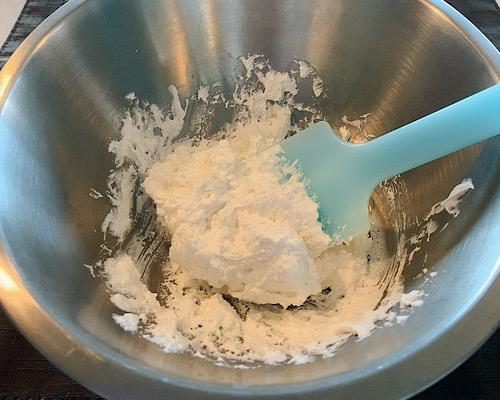 粉ゼラチンを大さじ1と1/2程度の湯と混ぜて、先にしっかりと溶かしておく。溶けたことが確認できたら、ボウルに加えて手早く混ぜれば、ムースの生地のできあがりだ。