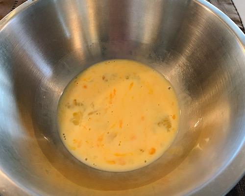 大きめのボウルに卵を溶きほぐしてから、牛乳を加えて混ぜておく。