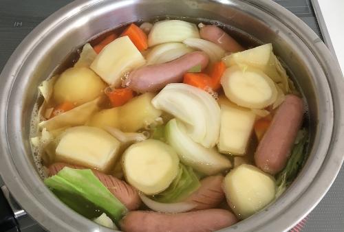 Step.4 鍋に出汁と野菜、ウインナーを入れ煮込む