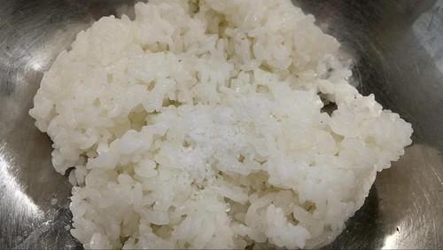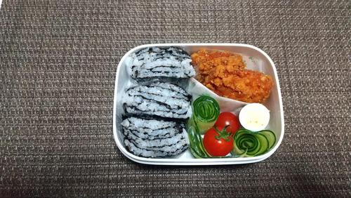 ラップを付けたままお弁当箱に入れると、食べる時に手が汚れないので便利だ。