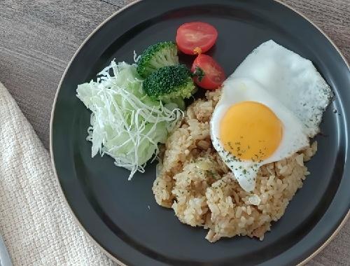 好みで乾燥パセリ、目玉焼きや野菜などを添えて、美味しくいただこう。
