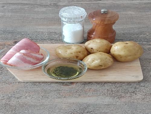 Step.1 じゃがいも、ベーコンをカットする