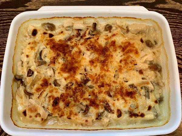 溶けるチーズとパン粉をふりかけ、260℃のオーブンで10分~12分焼く。