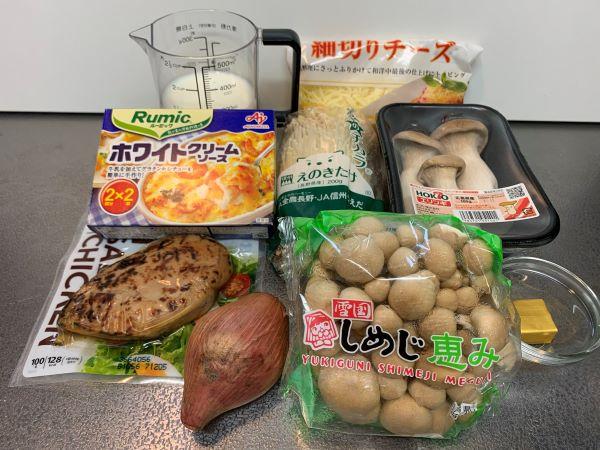 鍋にホワイトクリームソースの素と牛乳を入れ、混ぜながら中火で一煮立ちさせる。弱火にしてさらに2~3分煮詰める。ソースの味見をして塩味が足らないようであれば塩少々(分量外)で補っておく。そのほか、好みのレトルトのグラタンソース(250cc程度)を使えば、さらに時短になる。