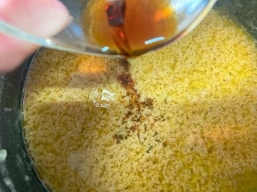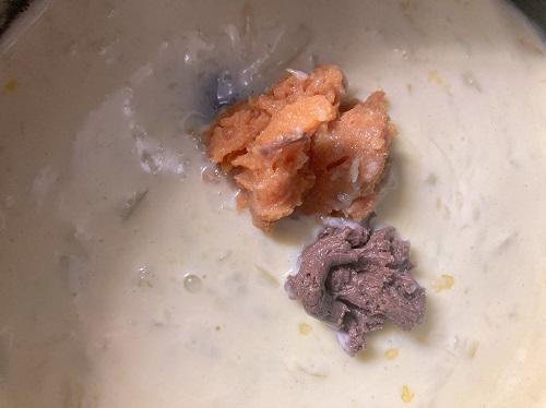 Step.2 アンチョビと味噌、オリーブオイルを加える