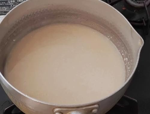 鍋を弱火にかけ、ヘラで酒粕を混ぜて溶かす。ふつふつと沸いてきたら砂糖を加えて溶かす。中火で3~5分程煮ていくとアルコールが飛び、若干味が丸くなる。10分程度弱火で煮込み、好みの甘さで味を整えて完成。