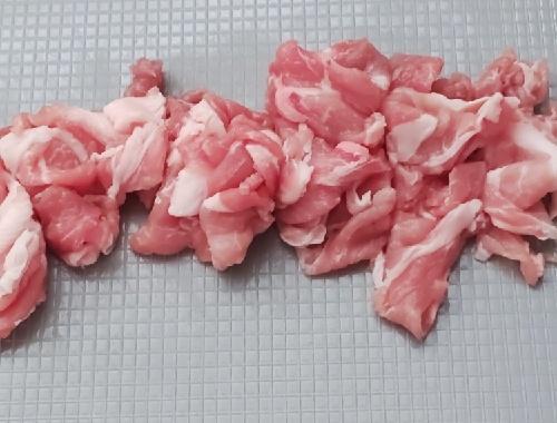 小葱は小口切りに、豚小間切れ肉は食べやすい大きさに切っておく。
