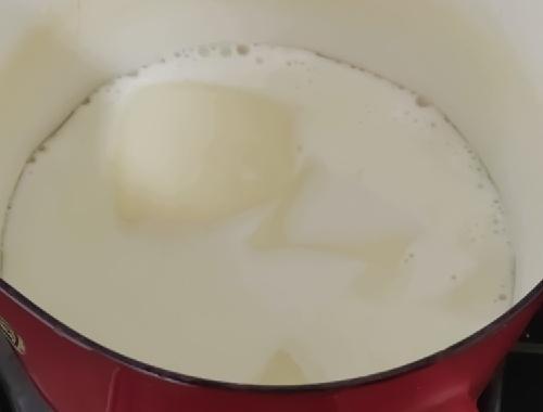 Step.1 杏仁豆腐と牛乳を火にかける
