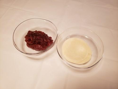 皮の半分の端の部分に水(分量外)をつける。半分に折りたたみ、しっかり両端をしっかりふさぐ。