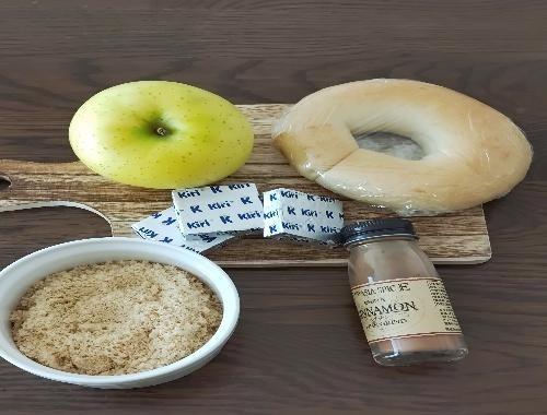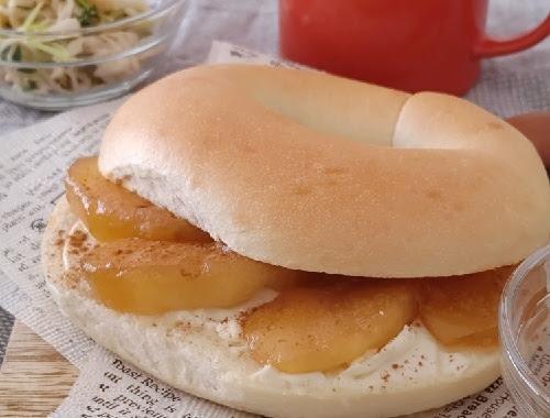 粗熱がとれたら、クリームチーズ、煮りんごの順に乗せていく。最後にシナモンをさっと1、2振りして完成。