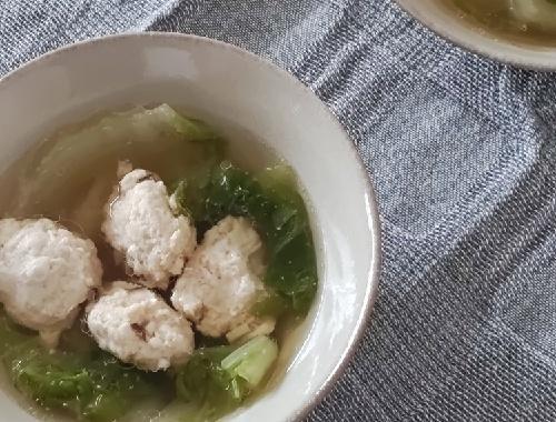 鍋に水、白菜、酒、顆粒中華出汁、おろししょうがを入れて中火にかける。白菜が柔らかくなってきたら、丸く形成したつみれを加えていく。肉の色が変わったら、しょうゆを加えて軽く沸騰させる。最後に塩、こしょう、ごま油で味を整えて完成。熱々のうちに美味しくいただこう。