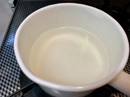 鍋に水125cc、粉寒天を入れて中火にかける。寒天が完全に溶けるまでよくかき混ぜながら沸騰させ、火を弱めて2~3分加熱する。グラニュー糖を一度に加え、溶けたら火を止める。