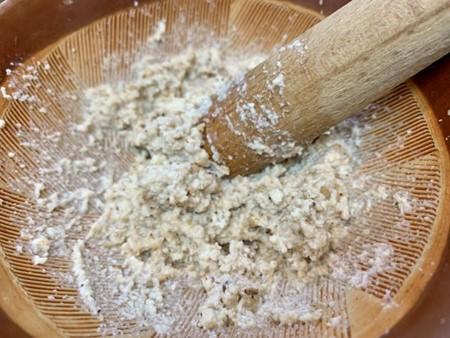Step.1 鶏だんごの準備(1)豆腐とごまをすりつぶす