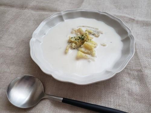 鍋に潰した焼きいもと、牛乳を入れて弱火にかける。焦がさないように、木べらで潰しながら焼きいもを牛乳に溶かすようなイメージで混ぜていく。