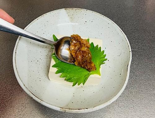 鶏だんごの周りに白菜や豆腐を入れ、少し火を強めて煮立てる。だんごはスプーンですくって小鉢に移し、野菜類が煮えたらスープと共にいただく。