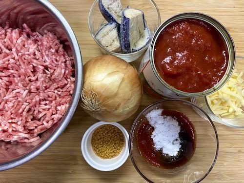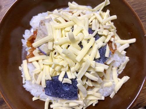 ドリア用の皿にご飯、ボロネーゼ、なす、チーズをのせる。予熱した180℃のオーブンで、10分ほど焼けば完成だ。
