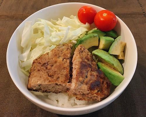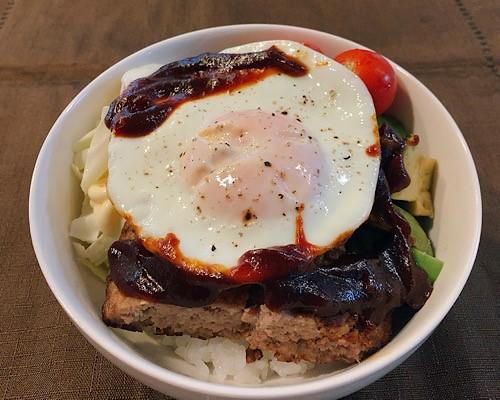 大きめの器にごはんを盛り、ハンバーグをのせる。