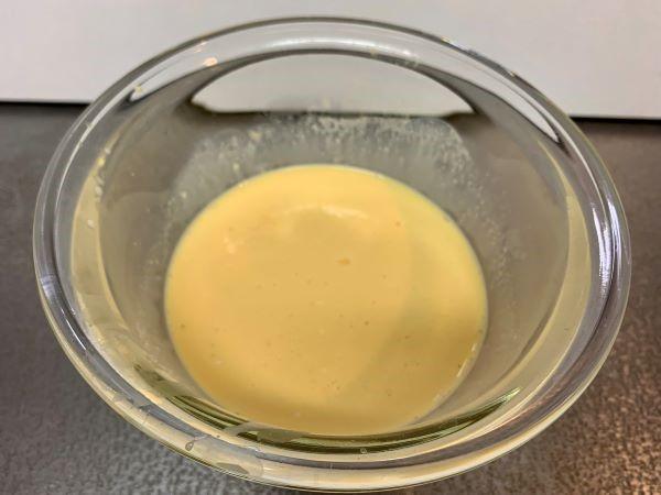 ボウルに卵、生クリーム、水、塩を入れてよく混ぜる。