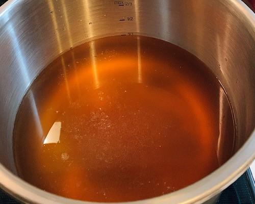 圧力鍋に水2L、オイスターソース、塩、和風出汁の素、鶏ガラスープの素を入れて、軽く混ぜておく。この段階では、まだ火はつけないでおく。