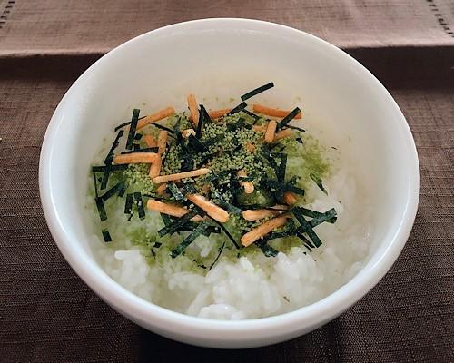 お茶漬けの素をかけて、混ぜ合わせたら完成となる。