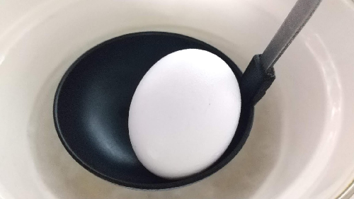 鍋に湯を沸かし沸騰させる。そこに、卵1個をゆっくりと入れる。(冷蔵庫から出してすぐのものが最適)このとき、沸騰しているお湯が危ないのと、割れるのを防ぐためにお玉などに乗せて入れよう。割ったときに黄身がトロリと流れる程度になるまで、5分30秒茹でる。