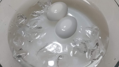 Step.2 茹で卵を氷水に入れて冷やす