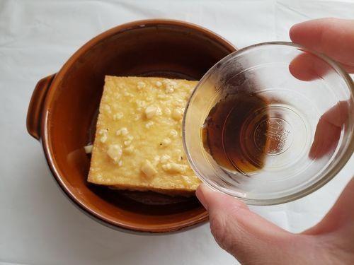 Step.1 厚揚げに調味料をのせる