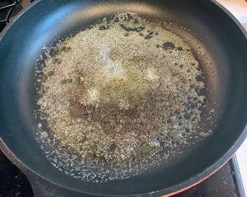 火の通りをなるべく均等にするために、タラを真ん中によせて並べる。