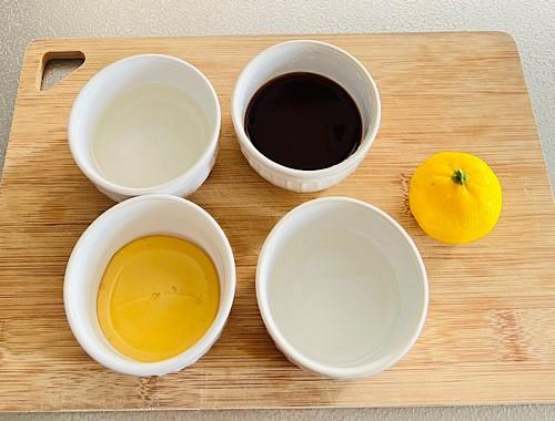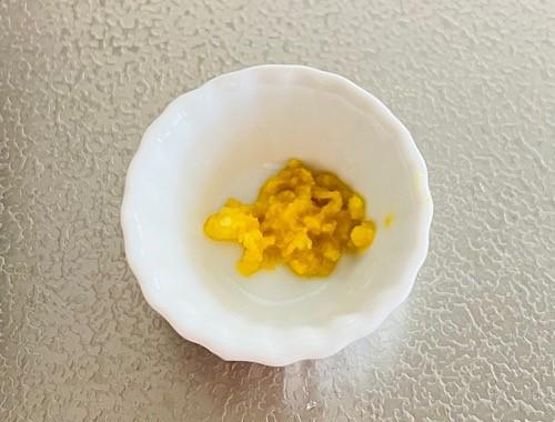 ゆずの皮は小さじ1/2程度をすりおろす。なるべく黄色い皮の部分のみ使用する。皮の白い部分は苦みがあるため避けよう。