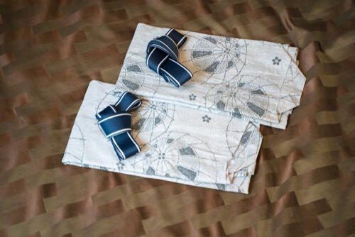 - 外湯めぐりなどに使う色浴衣を着る場合は、おはしょりを作ってサイズ調節する場合がある。