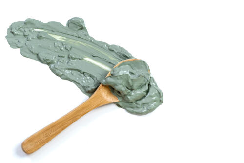 • 水やぬるま湯を少しずつ入れ、マヨネーズ程度のなめらかさになれば泥パックが完成。