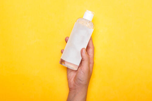 - 500円玉の大きさを目安に、化粧水を手の平に出す。