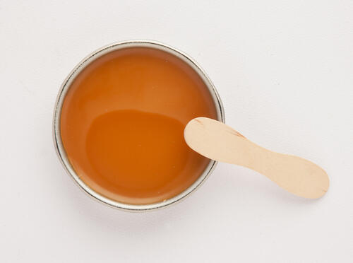 肌がキレイになったら、毛の流れと同じ方向にブラジリアンワックスを塗る。ブラジリアンワックスは専用のヘラですくい取り、毛の根本から薄く均一になるように塗るとよい。
