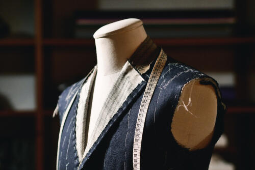採寸してサイズや体型を反映した自分だけの型紙を作り、仮縫いをして微調整を加えるタイプ。採寸や製図、裁断、縫製などの一連の作業を、テーラーが手作業で行なう。仮縫い後に試着して調整することで、より着心地のよいスーツに仕上がるのだ。