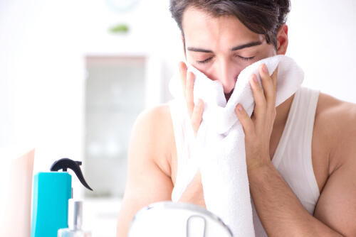 清潔でやわらかいタオルを使おう。摩擦刺激を少なくするため、タオルに顔を押し当てるようにふくとよい。