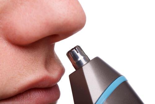 - 鼻毛カッターの電源を入れ、ゆっくり鼻の穴に入れる。