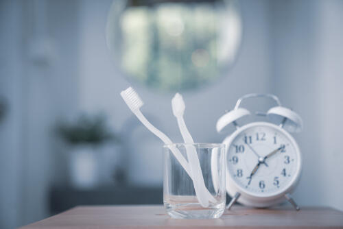 朝の歯磨きは朝食後に1回で済ませる方が多い。しかし朝の歯磨きは、起床後すぐのタイミングと朝食後で2回行うのが理想的である。これは、就寝中に唾液の分泌量が減ることで、口内の菌が繁殖してしまうからだ。細菌だらけの口内で朝食を摂ると、食事に含まれる糖と菌が混ざり合うため、起床時すぐに歯磨きをした方に比べて虫歯になりやすいのである。また、食べ物と一緒に菌を体内に取り入れていることになり、衛生的にもよくない。