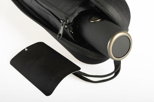 また、別売りケースは付属ケースよりも実用的で、使うメリットが非常に大きいため、外出する機会の多いビジネスマンにもぴったりだ。具体的なメリットとしては、防水性が高いことが一番に挙げられる。折り畳み傘とセットになっている付属ケースの場合は防水機能がついておらず、収納すると外側に水が染みてきてしまうことが多い。しかし別売りのケースなら、中にマイクロファイバー素材が使われているため、使った直後に折り畳み傘を収納しても水が染みてくる心配が全くないのだ。