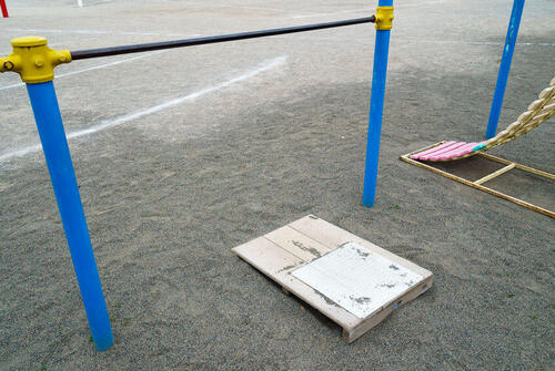 - 台の上に乗り、バー(鉄棒)よりも高い位置をとる