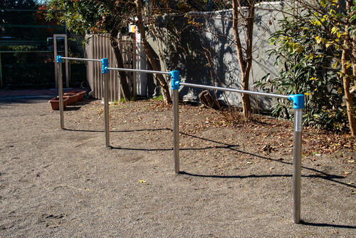 - 肩幅よりも広げてバー(鉄棒)に順手でつかまる