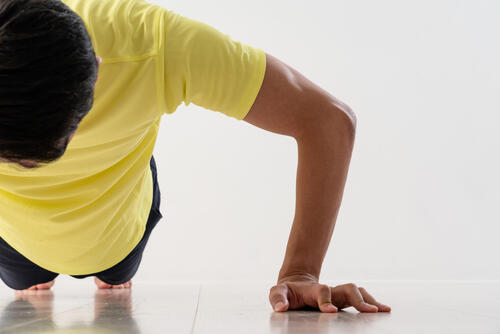 一般的に「腕立て伏せ」呼ばれる筋トレで、大胸筋や三角筋を鍛えることが可能である。手の間隔を広げれば大胸筋を集中的に鍛えることができ、手の間隔を狭めれば三角筋を集中的に鍛えることができる。