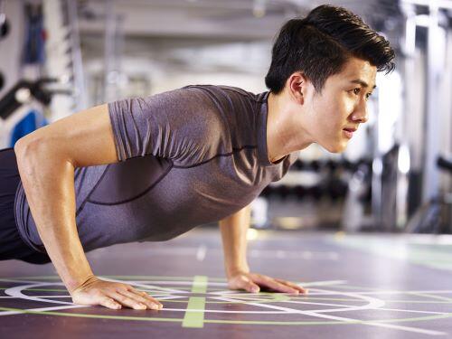誰でも一度はやったことのある腕立て伏せも上腕三頭筋を鍛えることのできるトレーニング方法だ。呼吸を一定に、上腕三頭筋を常に意識しながら腕立てを行うことでより効果を得る事ができる。