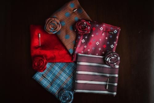 結婚式の2次会やパーティーなどでは、白以外のポケットチーフも使用可能だ。どのような色を選べばよいか迷う場合は、ネクタイの色と同系色を合わせて統一感を出すのがおすすめである。