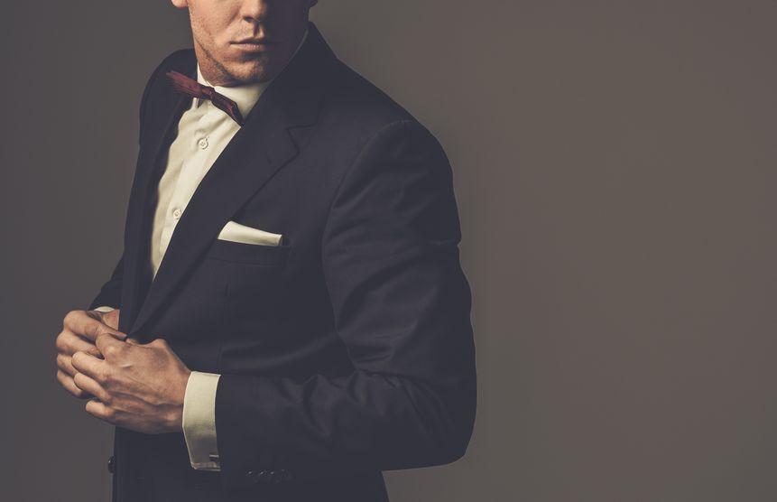結婚式などのフォーマルなシーンでは、タキシードや燕尾服と合わせるのがおすすめだ。また、シャツの襟はウィングカラーやレギュラーカラーなど、ある程度フォーマルなものであればマナーの範囲。フォーマルなシーンでは、なるべく光沢感のある素材を使用した蝶ネクタイを選ぶようにしよう。よりオシャレに着飾るなら、ベストやサスペンダーをプラスするのもよい。