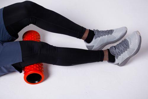 - 両足を伸ばして床に座ったら、ストレッチポールを太ももの裏に置こう。