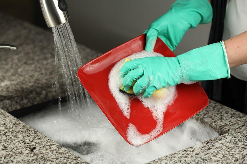 皿洗いや風呂掃除などの水仕事をするときは、ゴム手袋をして肌を守ってほしい。どうしても素手で洗いたい場合は、うるおいを奪ってしまうお湯ではなく水を使うとよい。水仕事が終わったら、ハンドクリームで手荒れケアを忘れずに行おう。