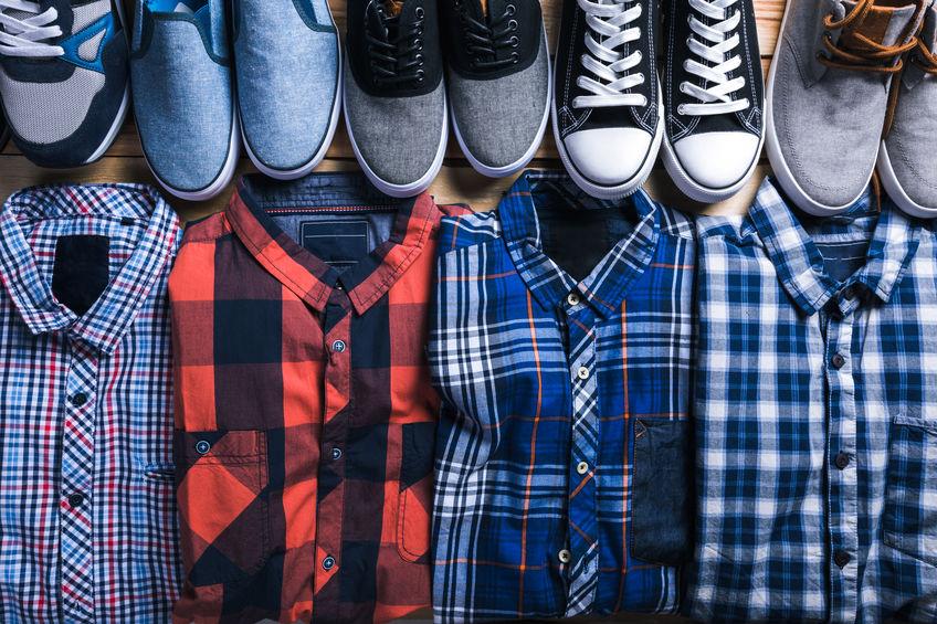 秋はVネックTシャツとシャツの組みあわせ