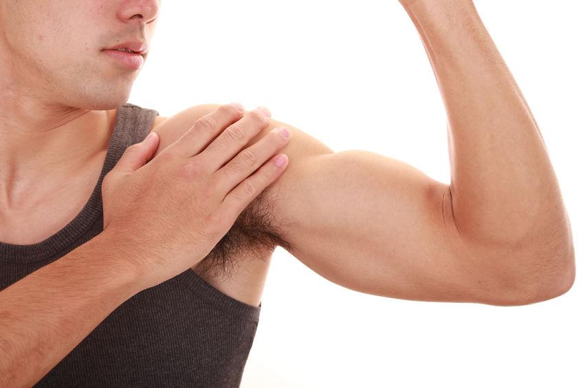 - 最も盛り上がる部分、僧帽筋を反対の手で押さえ圧をかける。