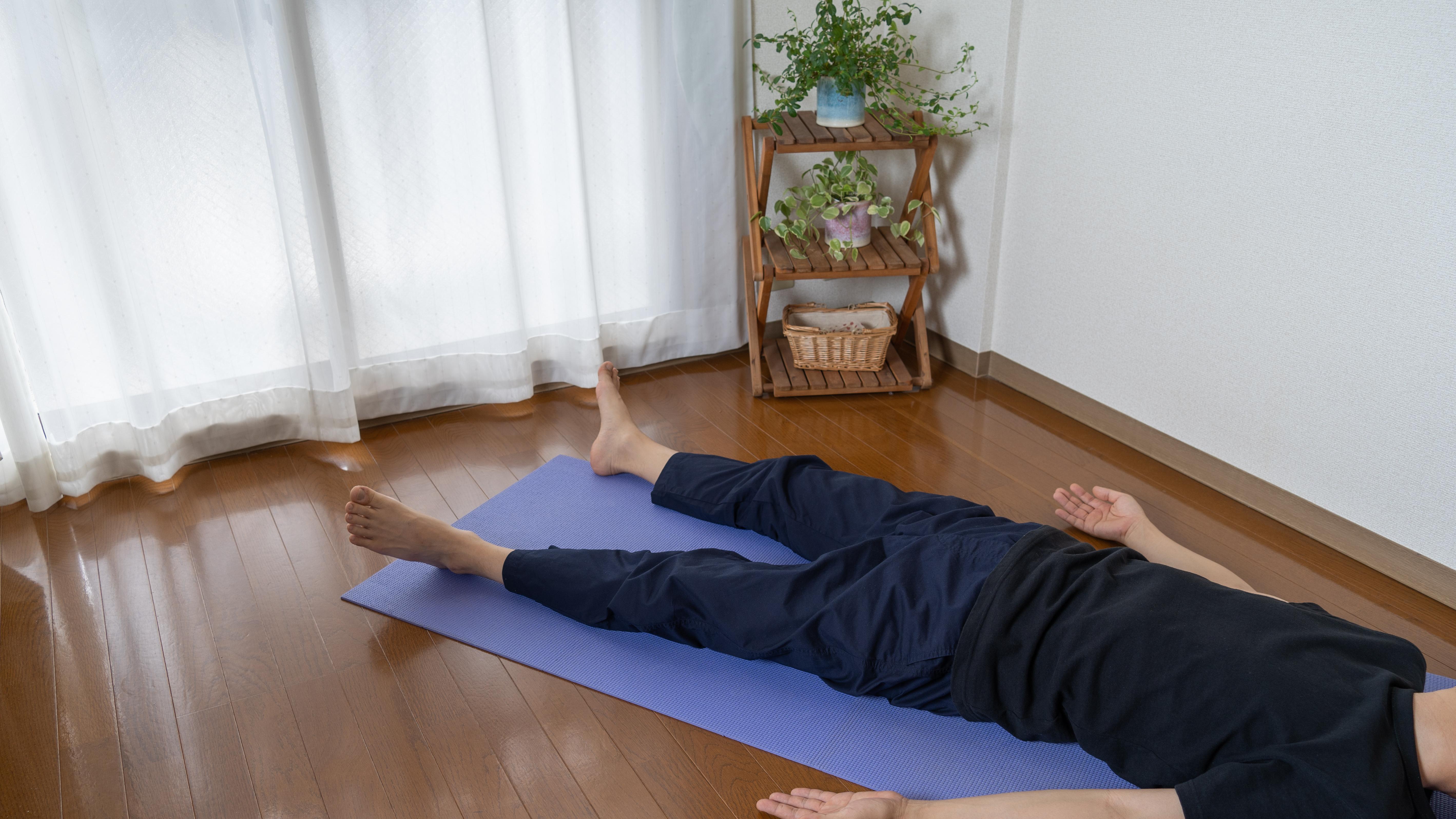これまで4つの英雄のポーズをお伝えしたが、もう1つ、寝たままできる「仰向けの英雄のポーズ」があるので紹介する。