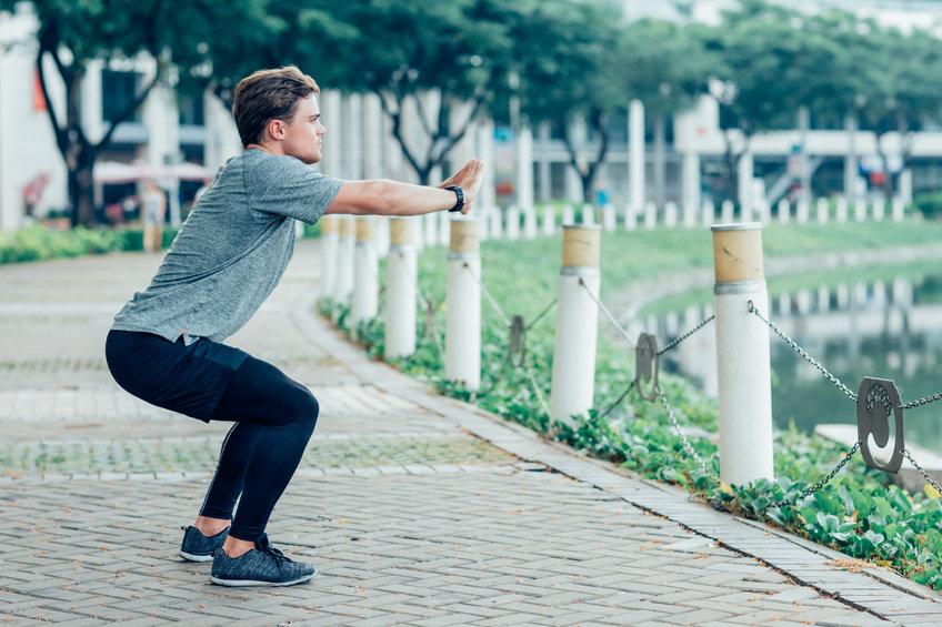 スクワットは、下半身の筋肉を中心に負荷をかけられるトレーニングだ。自重の場合には、動作の速度や、足のスタンスなどを変えることで、より高負荷に調整できる。さらに高負荷を求める場合には、バーベルやダンベルを用いたウエイトスクワットにチャレンジするのもよいだろう。